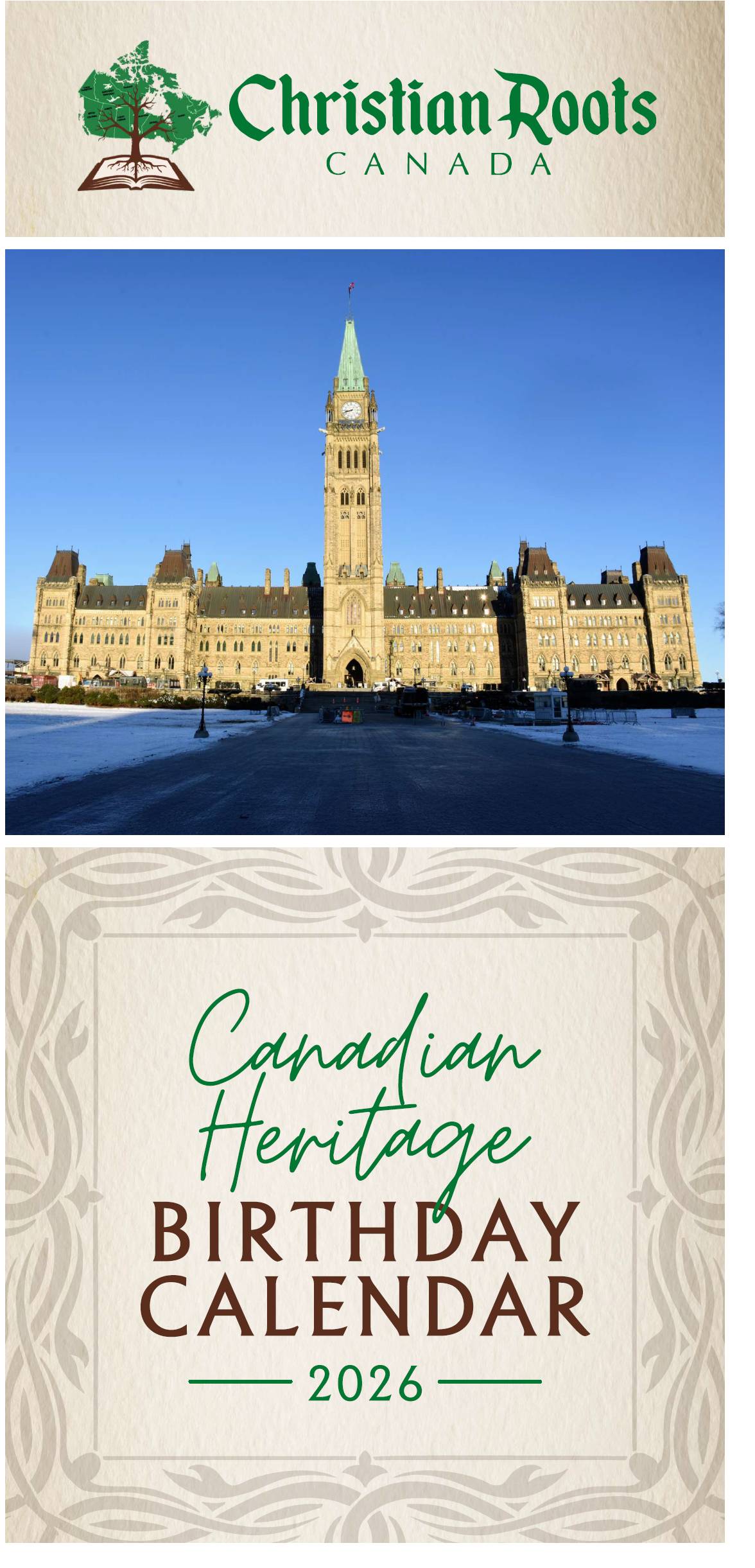 Deals Ending Soon Five more days before these great deals go away! The FREE eBook - The Biblical Legacy of Canada's Parliament Buildings. Get it NOW! This is the first book printed about Scripture verses in the Peace Tower. The Early-Bird pricing for our 2026 Canadian Heritage Birthday Calendar. Price increase after November 30th. Get it NOW! We made this year's calendar with three objectives in mind. On the inside of the front cover you will read this: Each month, at the top of the calendar,...